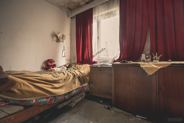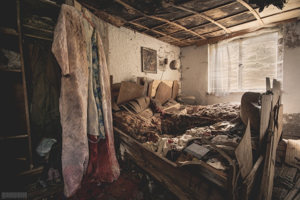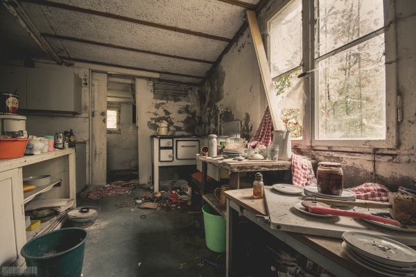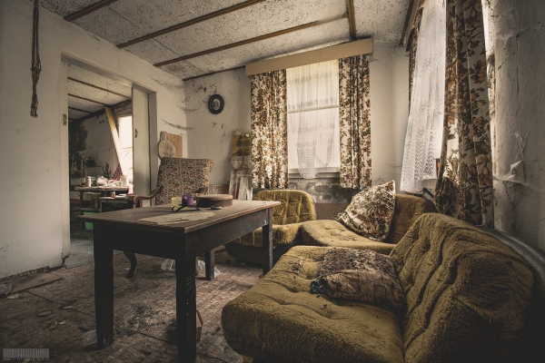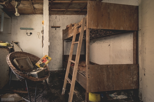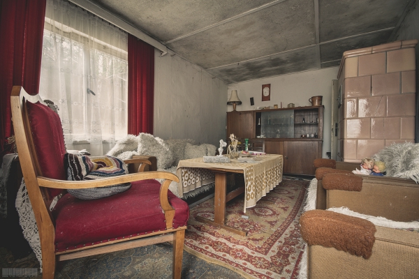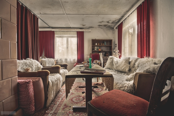 Das Haus der Mormonen ist ein Lost Place in Thüringen. Von außen wirkte das verlassene Gebäude eher wie eine Art Ferien-Bungalow. Jedoch stellte sich im Inneren des Gebäudes heraus, dass hier mehrere Personen dauerhaft lebten. Allerdings lebten diese auf engstem Raum zusammen. Es gab zwei Wohnbereiche. Einer hiervon diente als Durchgang zur Küche. Außerdem befand sich ein großzügiges Bücherregal in diesem Raum. Es war jedoch fast ausschließlich mit Glaubensbüchern bestückt. Der Hauptwohnbereich war sehr gemütlich eingerichtet, denn auf jedem Sofa und Sessel befanden sich Schafsfelle. Im hinteren Bereich befand sich noch ein Schlafbereich mit 2 Betten. Doch es gab auch noch ein extra Schlafzimmer mit einem Doppelbett und einem Hochbett.