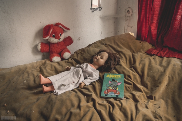 Auch Kinder lebten einst mit im Haus, denn es befanden sich mehrere Puppen im Haus. Selbst ein Puppenwagen konnte im Wohnzimmer bestaunt werden. Allerdings ließ sich nicht herausfinden wieviel Kinder hier einst lebten. Besonders schön war das Kinderbuch „Rüssel auf Reisen“, welches auf einem Bett lag. Dieses besaßen viele Kinder der ehemaligen DDR selbst. Grundsätzlich ein sehr interessanter Lost Place. Bleibt zu hoffen, dass all die Hinterlassenschaften noch lang in dem Zustand erhalten bleiben.