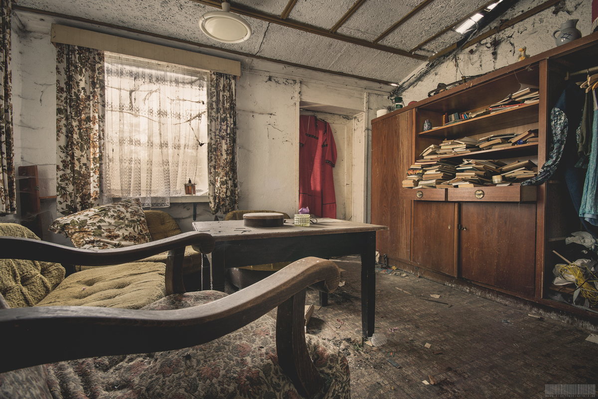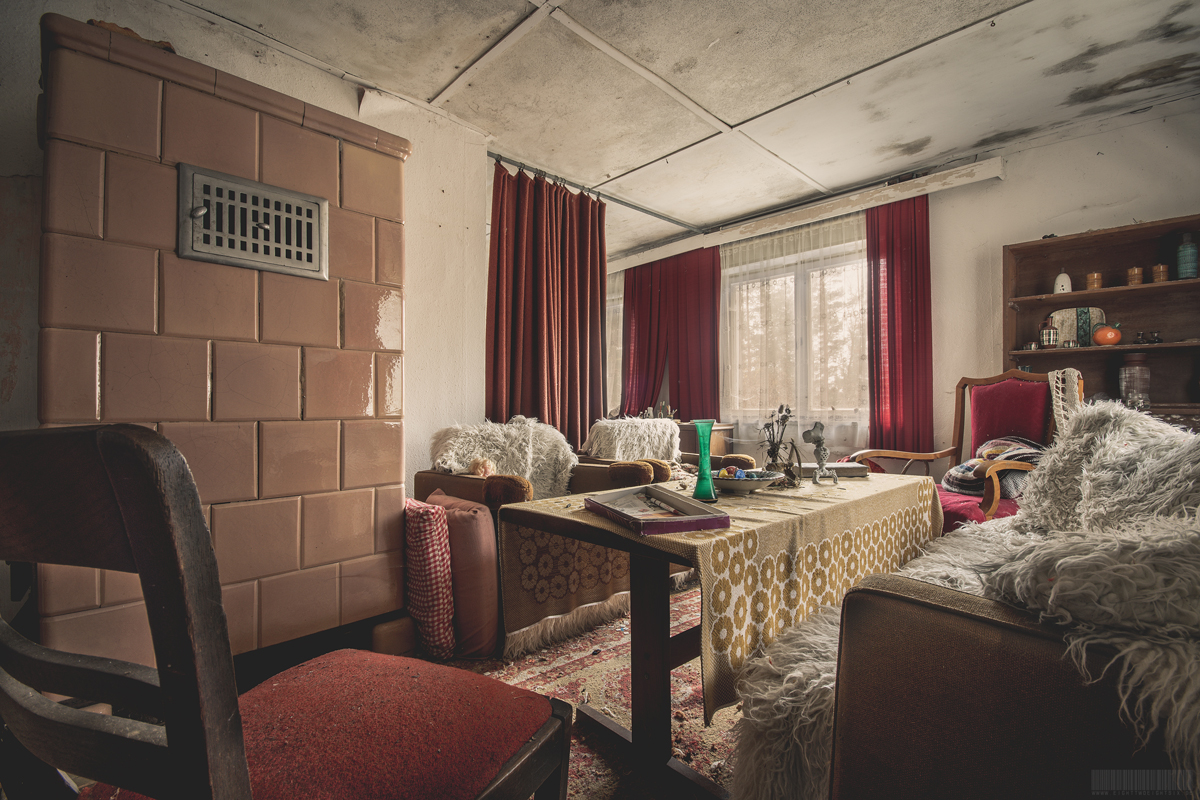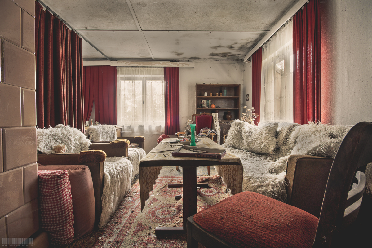 Das Haus der Mormonen ist ein Lost Place in Thüringen. Von außen wirkte das verlassene Gebäude eher wie eine Art Ferien-Bungalow. Jedoch stellte sich im Inneren des Gebäudes heraus, dass hier mehrere Personen dauerhaft lebten. Allerdings lebten diese auf engstem Raum zusammen. Es gab zwei Wohnbereiche. Einer hiervon diente als Durchgang zur Küche. Außerdem befand sich ein großzügiges Bücherregal in diesem Raum. Es war jedoch fast ausschließlich mit Glaubensbüchern bestückt. Der Hauptwohnbereich war sehr gemütlich eingerichtet, denn auf jedem Sofa und Sessel befanden sich Schafsfelle. Im hinteren Bereich befand sich noch ein Schlafbereich mit 2 Betten. Doch es gab auch noch ein extra Schlafzimmer mit einem Doppelbett und einem Hochbett.
