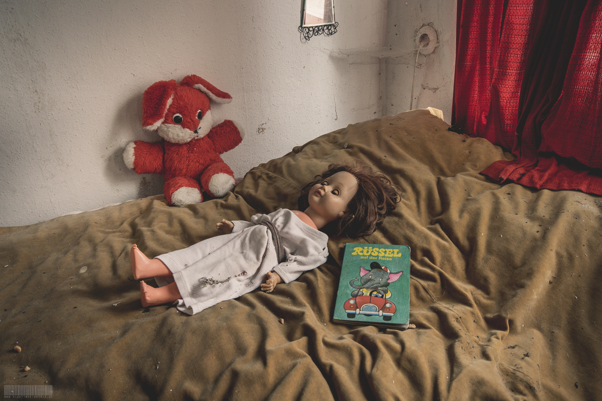 Auch Kinder lebten einst mit im Haus, denn es befanden sich mehrere Puppen im Haus. Selbst ein Puppenwagen konnte im Wohnzimmer bestaunt werden. Allerdings ließ sich nicht herausfinden wieviel Kinder hier einst lebten. Besonders schön war das Kinderbuch „Rüssel auf Reisen“, welches auf einem Bett lag. Dieses besaßen viele Kinder der ehemaligen DDR selbst. Grundsätzlich ein sehr interessanter Lost Place. Bleibt zu hoffen, dass all die Hinterlassenschaften noch lang in dem Zustand erhalten bleiben.