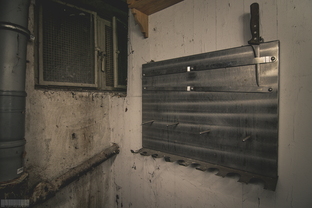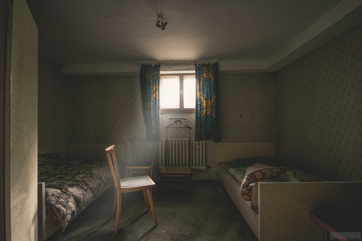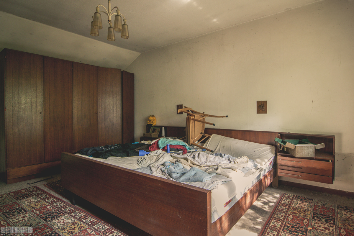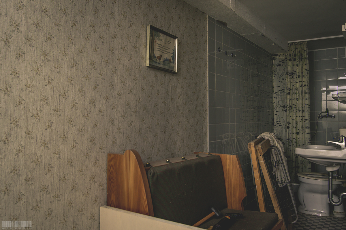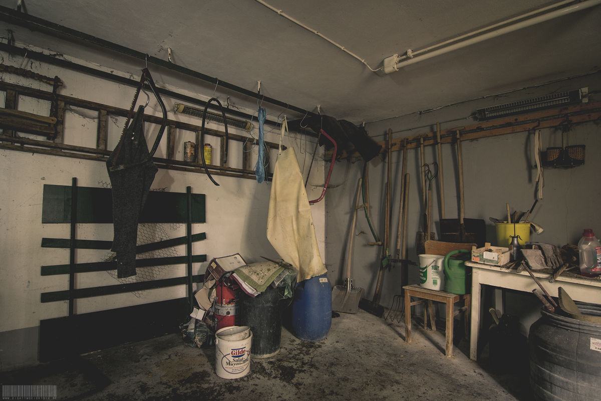 Diese kleine idyllische Bungalow gehörte einst einem Jäger. Abgelegen am Waldrand steht sein ehemaliges Wohnhaus nun einsam und verlassen. In seiner Garage hängen noch die Häken an denen er scheinbar seine Beute zum Ausbluten aufhing. Im Keller befindet sich noch der Rest seines Jagd- bzw. Schlachtwerkzeuges. Das restliche Heim war jedoch liebevoll eingerichtet. Ein wunderschönes Wohnzimmer mit Blick auf die Terrasse sowie ein lichtdurchflutetes Speisezimmer waren noch nahezu unversehrt. Lediglich einige seiner Jagdtrophäen wurden entwendet, wie man an den Wänden erkennen kann. Einige sind allerdings noch vorhanden. Er liebte es allem Anschein nach, neben Wild auch Auerhähne zu jagen. Davon waren noch 3 Trophäen vorhanden. Außerdem standen noch Bilder seiner Frau die wahrscheinlich vor Ihm starb auf den Schränken. Im Keller war zudem noch eine sehr gemütliche Bar vorzufinden. Hier trank er sicher mit seinen Jagdfreunden den ein oder anderen Drink. Falls einer von Ihnen zuviel davon hatte konnte er sich direkt nebenan im Gästezimmer ausschlafen. Ein sehr schönes kleines Haus was nun alle Kriterien eines Lost Places erfüllt und im Laufe der Zeit immer weiter verfallen wird. Der Garten hat sich bereits in einen kleinen Dschungel verwandelt.