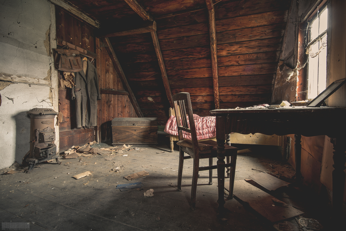 Das Haus des Tischlers ist ein Lost Place in einer kleinen Stadt in Sachsen. Wann dieses Gebäude erbaut wurde ließ sich nicht herausfinden. Vermutlich aber bereits im 17. Jahrhundert. Von außen erschien es recht unscheinbar. Jedoch stellte sich im Inneren des Gebäudes heraus, dass es hier noch ein paar schöne Dinge aus vergangenen Zeiten zu entdecken gibt. Im Obergeschoss befand sich ein großzügiger Wohnbereich mit Schlafzimmer, Wohnzimmer, Küche und noch 2 weiteren Räumen. Ein Raum davon wurde allem Anschein nach von der Gattin des Tischlers genutzt, um zu nähen und zu stricken. Verwunderlich war allerdings, dass es kein Bad gab. Nur eine Latrine und zwei Waschbecken befanden sich im ganzen Gebäude. Unvorstellbar heutzutage so zu leben.