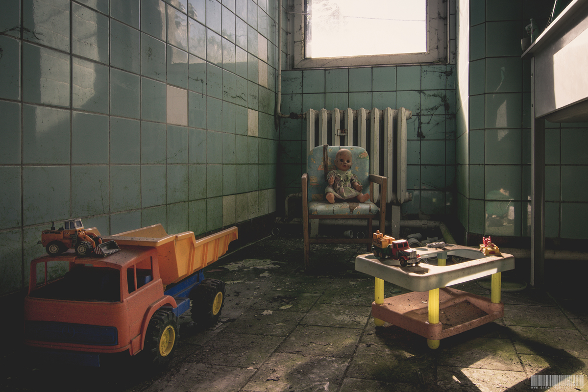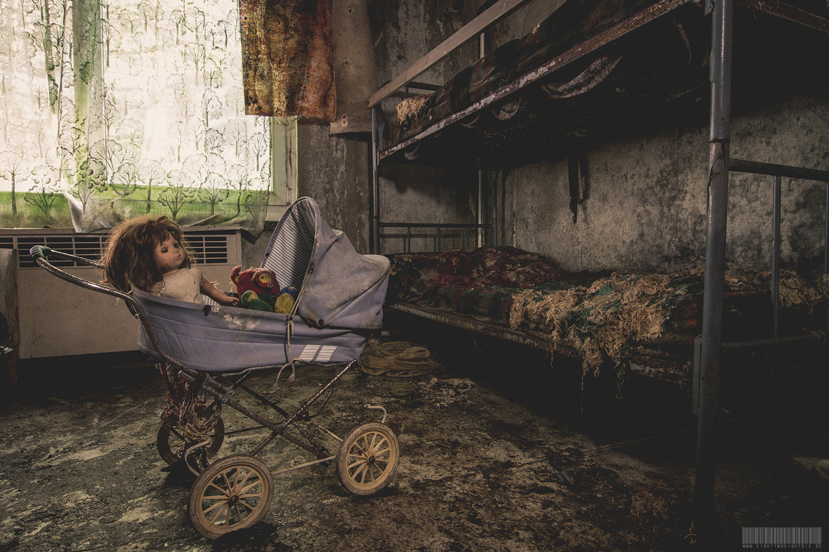 Puppenwagen in verlassenes Kindheim Jugendlandheim Alte Molkerei in Sachsen Lost Place verlassene Gebäude