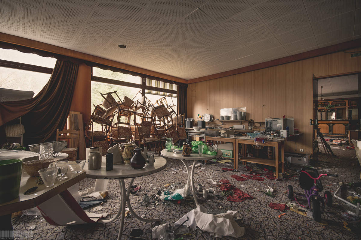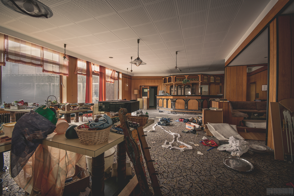 Das Flohmarkthotel war ein verhältnismäßig großes Hotel mit einer Vielzahl an Zimmern. Geschlossen wurde es vermutlich zu Beginn der 2000er Jahre, nachdem der Tourismus im Harz zurück ging. Charakteristisch für die Namensgebung waren die im ganzen Komplex verteilten Tische mit Hotel-Utensilien. Diese Dinge sollten allem Anschein nach im Zuge der Schließung durch eine Art Haus-Flohmarkt verkauft werden. Sehr schön erhalten war der Bereich des Schwimmbads. Dieses verfügte zudem über einen Whirlpool, eine Sauna und eine Dampfsauna.