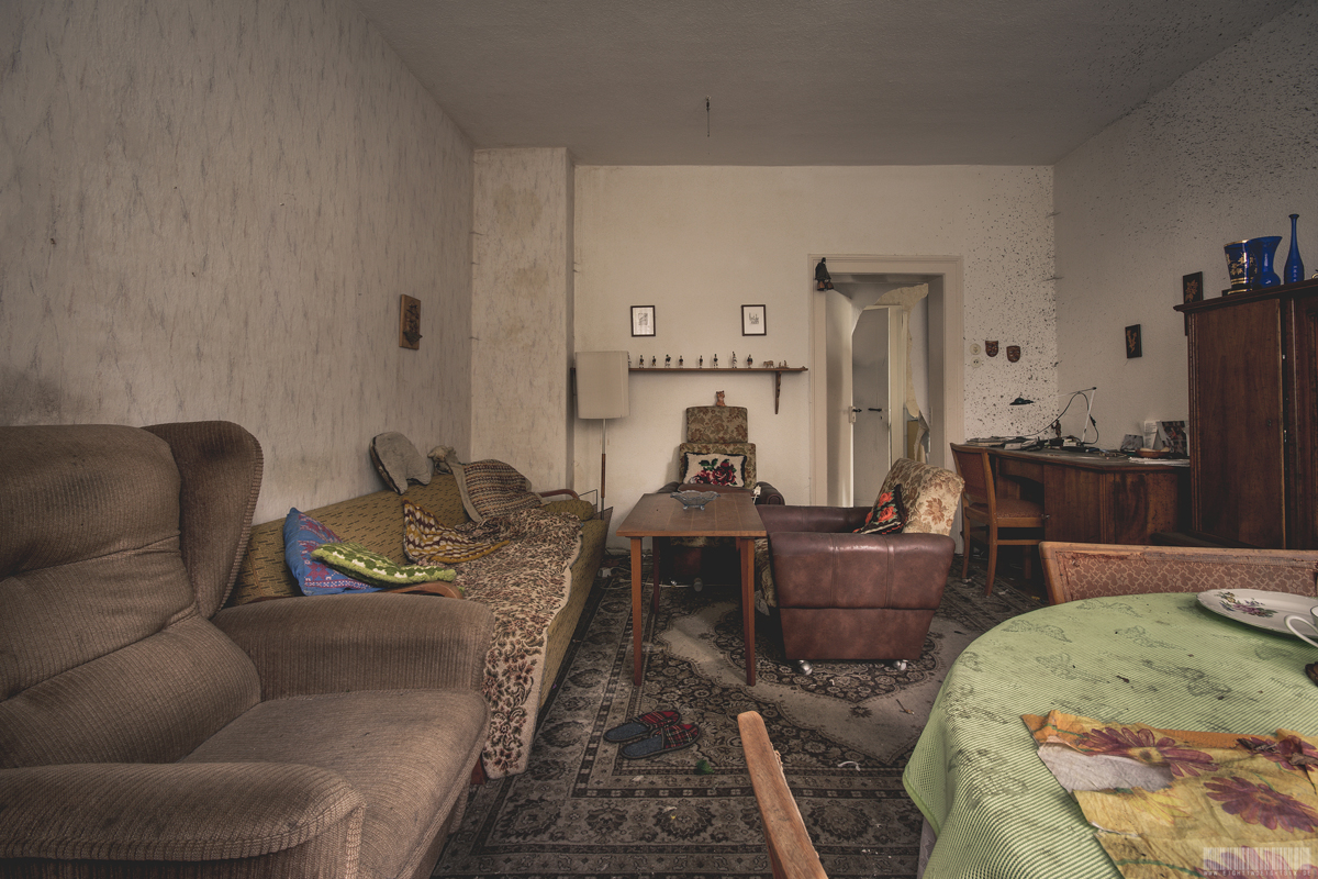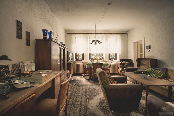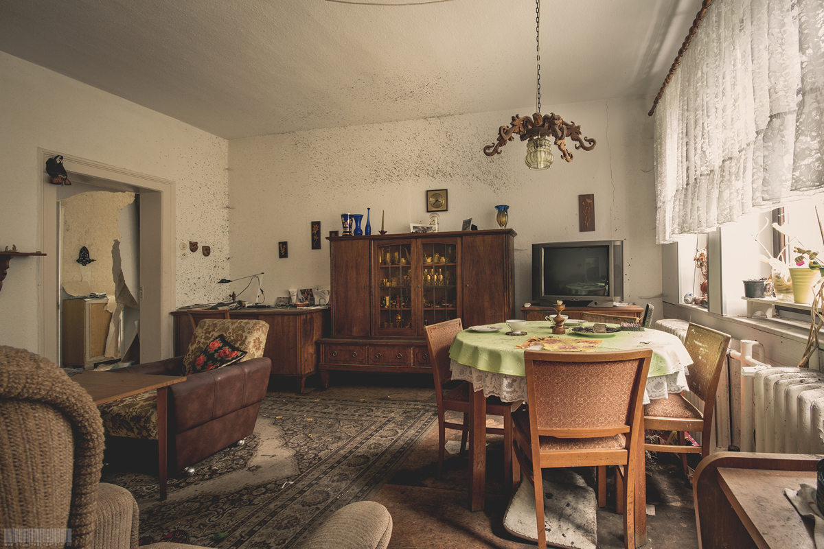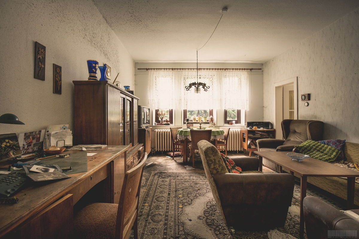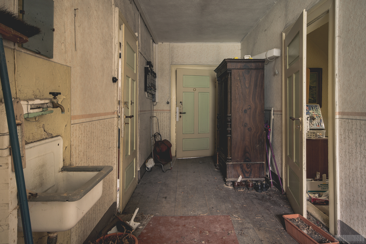 Das Haus des Schnitzers ist ein Lost Place, welcher sich ganz unscheinbar in einem Dorf in Sachsen befindet. Hier lebte einst ein Schnitzer und seine Gattin. Geboren wurde er 1916. Seine Gattin kam 1920 zur Welt. Beide hatten eine Tochter, welche ihren Eltern später Zwillinge als Enkel schenkte. Dies veranschaulichten mehrere der noch auf der Schrankwand stehenden Fotografien. Sie zeigen wie Oma stolz in ihrem Sessel sitzt und sich an ihren Enkeln erfreut. Wann das mittlerweile verlassene Mehrfamilienhaus erbaut wurde, ließ sich nicht herausfinden. Bewohnt wurde es bis zum August des Jahres 2007. Zuletzt lebte allerdings nur noch seine Gattin im Haus, welche durch einen ambulanten Pflegedienst gepflegt wurde.