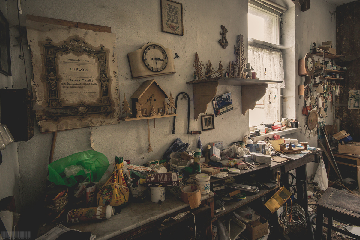 In dem verlassenen Gebäude befanden sich viele Hinweise darauf, was den ehemaligen Schnitzer zu Lebzeiten begeisterte. Außer seiner beruflichen Leidenschaft für das Schnitzen interessierte er sich allem Anschein nach auch für Autos. Es befand sich ein komplett zerlegter Trabant im Gebäude. Die Teile des Fahrzeugs füllten ein gesamtes Zimmer im Obergeschoss. Auch generell war er vermutlich für jede Form von Handwerk zu begeistern, denn es waren insgesamt 3 Werkstätten mit mehreren Werkbänken und einer Vielzahl von Werkzeugen im Haus vorhanden. Viele seiner geschnitzten Werke befinden sich noch im Haus. Besonders schön anzusehen war die Sammlung von Bergmännern.