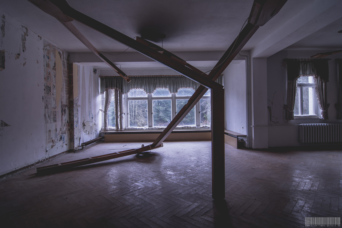 Bereits 1890 entstand dieses idyllische Hotel am Wald. Nach mehreren Betreiberwechseln fungierte es zuletzt als Sporthotel im Erzgebirge. Es verfügte über einen großzügigen Spielplatz, einen Fussballplatz, mehrere Tischtennisplatten sowie einen Saunabereich. Außerdem wurden Unmengen an Federballschlägern im Gebäude zurückgelassen. Mitte der 90er Jahre wurde es endgültig geschlossen. Nun ist es nur noch ein verlassener Ort mit mehreren Facetten. Ein Teil des Gebäudes wirkt wie eben erst verlassen, während der andere Teil bereits stark verfallen ist. Nicht umsonst wird dieser Lost Place auch als Two Face bezeichnet. Ein tolles Gebäude im sächsichen Outback.