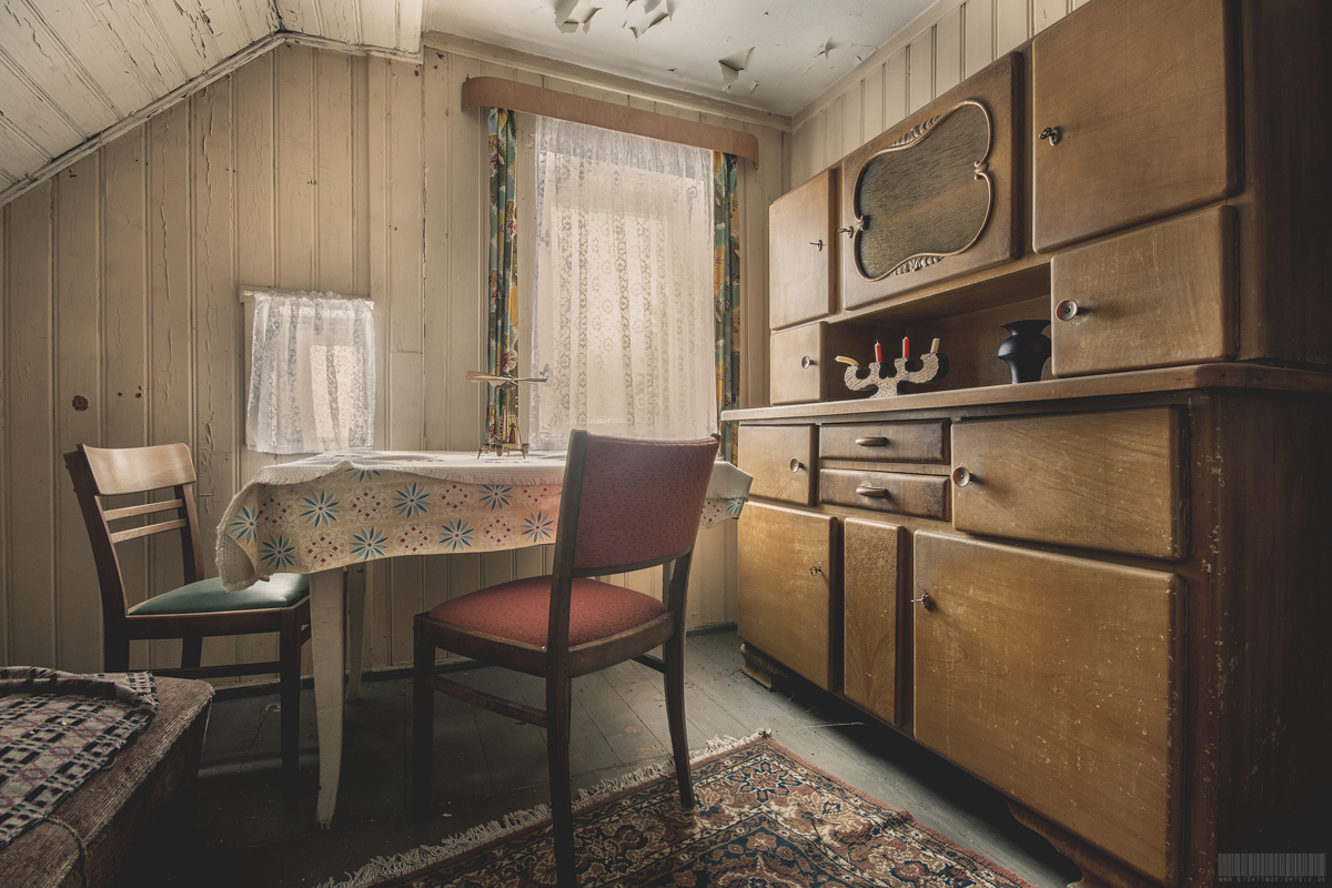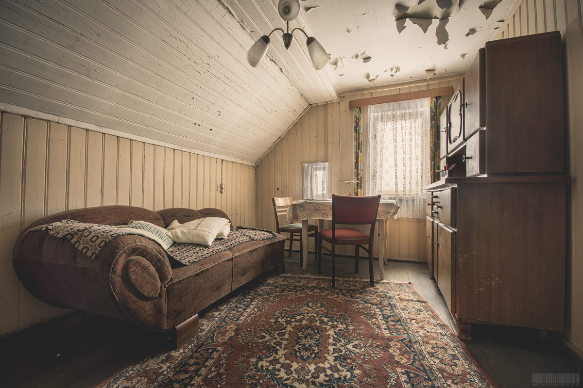 Huberts Heim ist ein recht unscheinbarer verlassener Ort im südlichen Sachsen. Von Außen fiel besonders die marode Gebäudesubstanz ins Auge. Es lösten sich bereits tragende Teile im Eingangsbereich. Jedoch war das Gebäude im Inneren in deutlich besserem Zustand als erwartet. Es war kaum Schimmel vorhanden und auch keine morschen Böden. Es handelte sich hierbei um ein recht kleines Wohnhaus. Im Erdgeschoss lagerten hauptsächlich Baumaterialien und Feuerholz. Der Wohnbereich erstreckte sich somit ausschließlich über das Obergeschoss. Wie früher üblich war Wohnzimmer und Küche ein Raum. Außerdem verfügte Hubert über ein kleines Schlafzimmer und ein Gästezimmer. Erstaunlich war allerdings, dass es kein Badezimmer gab. Lediglich eine Latrine für die Verrichtung der Notdurft befand sich im Haus.