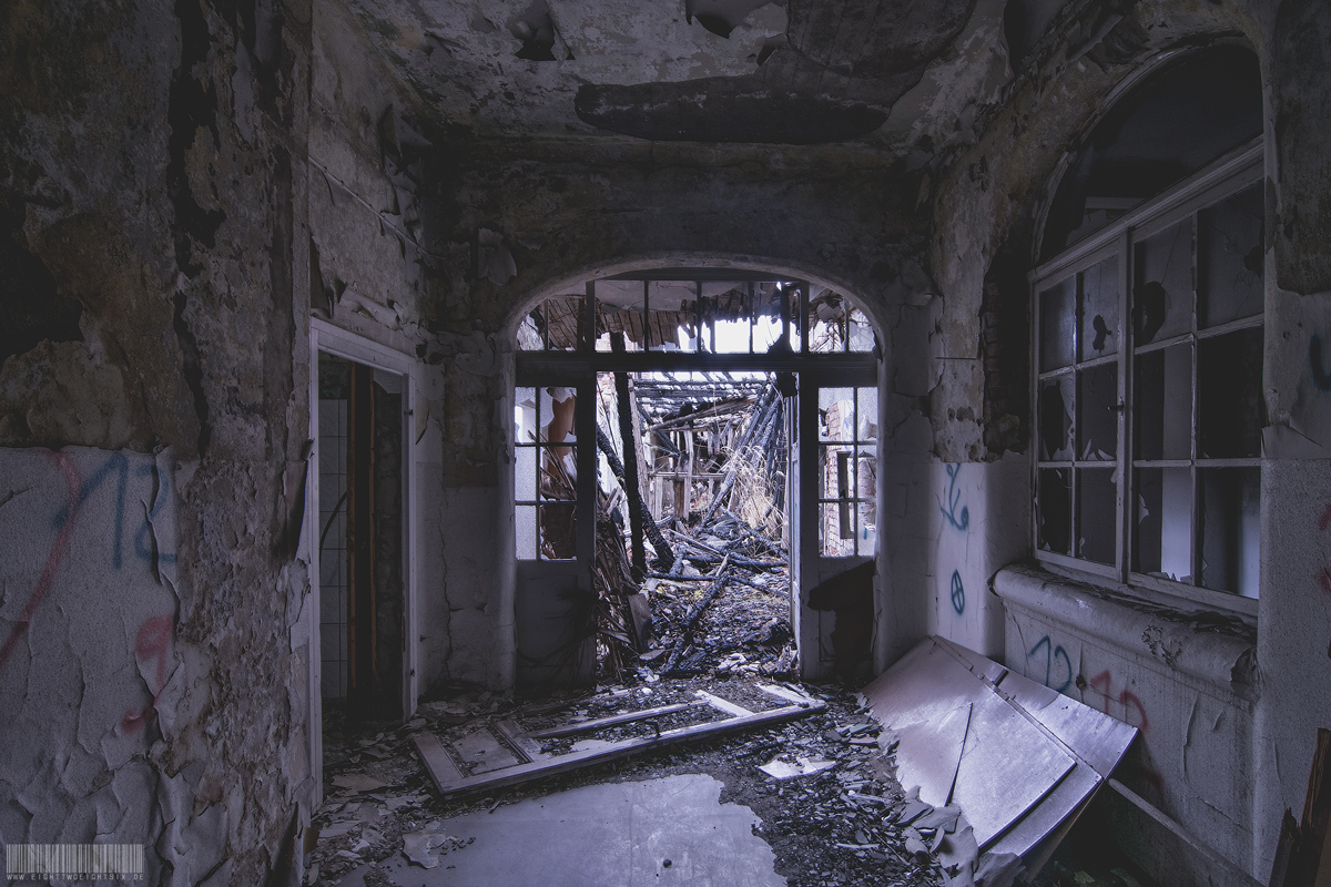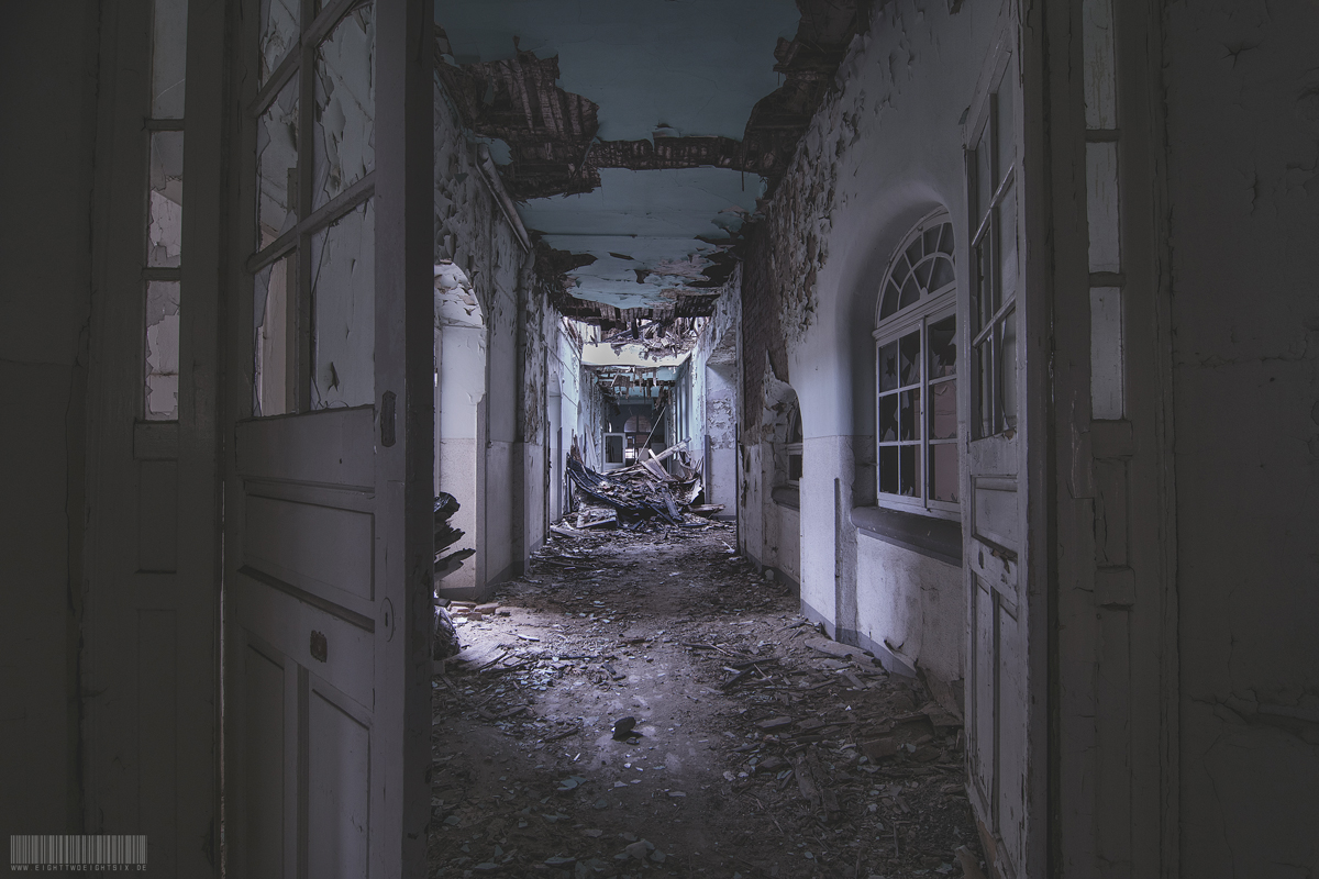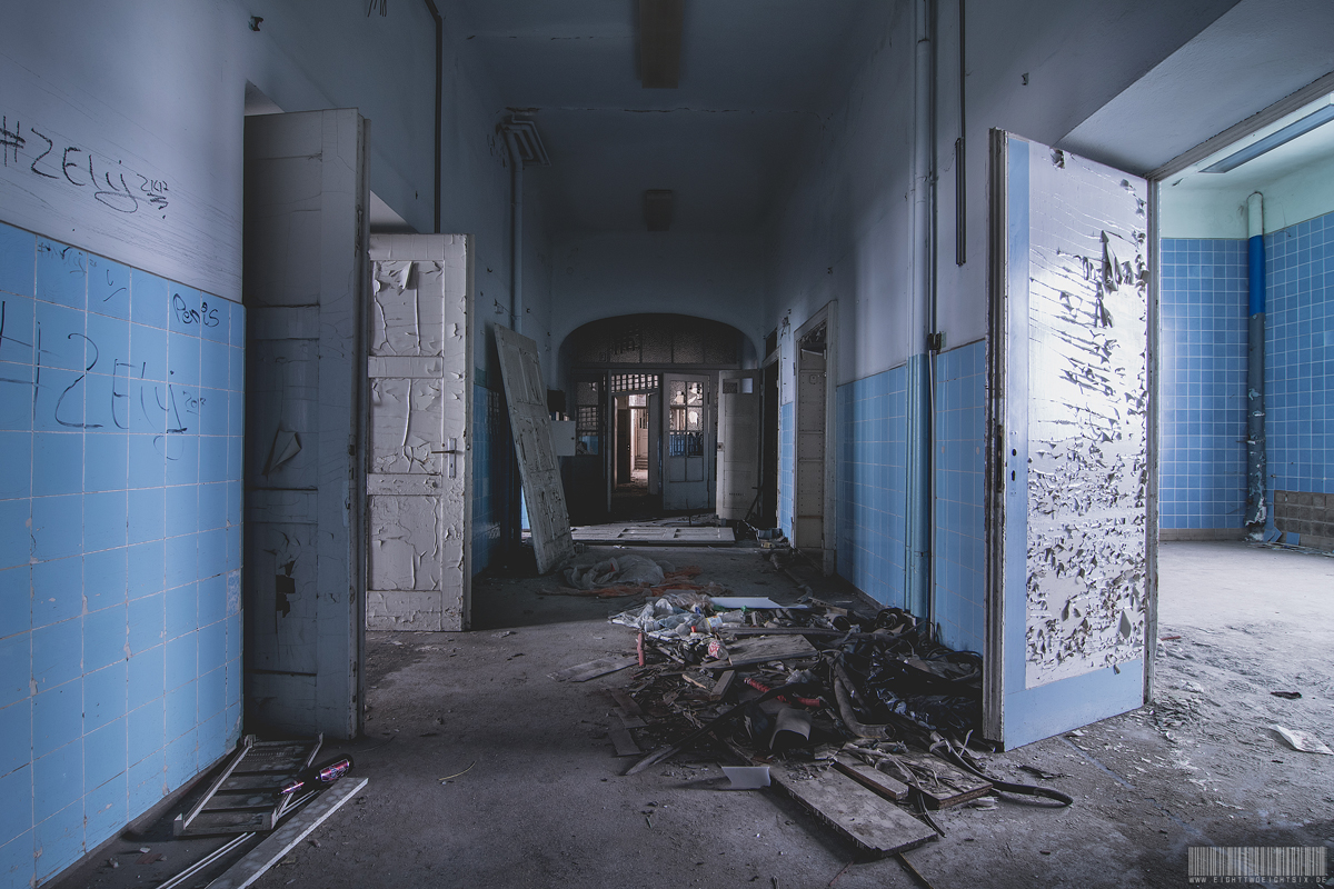 Das verlassene Kreiskrankenhaus in Sachsen musste im Jahre 1998 einem Neubau, welcher an einem anderen Standort errichtet wurde, weichen. Seit dem steht es leer und verfällt zusehends. Die Anfänge finden sich 1863 als ein erstes Gebäude das sogenannte Arbeits- und Versorgehaus erbaut wurde. Es diente zur Aufnahme und Korrektur arbeitsscheuer Personen sowie für akut erkrankte Insassen. Im Jahre 1880 machte sich ein Krankenhausneubau erforderlich. Im Laufe der Zeit wurde es zum Landkrankenhaus und es kamen 1899 und 1914 noch weitere Anbauten hinzu. 1951 wurde aus dem Landkrankenhaus das Kreiskrankenhaus. Nun ist dieser Lost Place dem Einsturz nahe. Der Zustand der Bausubstanz war mehr als desolat.