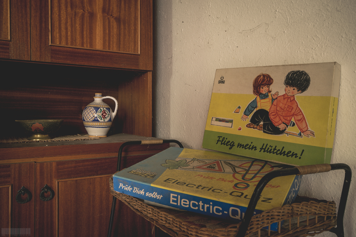 Der Lost Place wurde allem Anschein nach lange Zeit nicht mehr betreten. Unmengen von Spinnenweben zogen sich durch alle Räumlichkeiten. Besonders schön waren die alten DDR-Brettspiele, der Plattenspieler und das alte DDR-Radio. Diese Überbleibsel aus der DDR machten aus Professor Dornröschen einen ganz besonderen Lost Place.