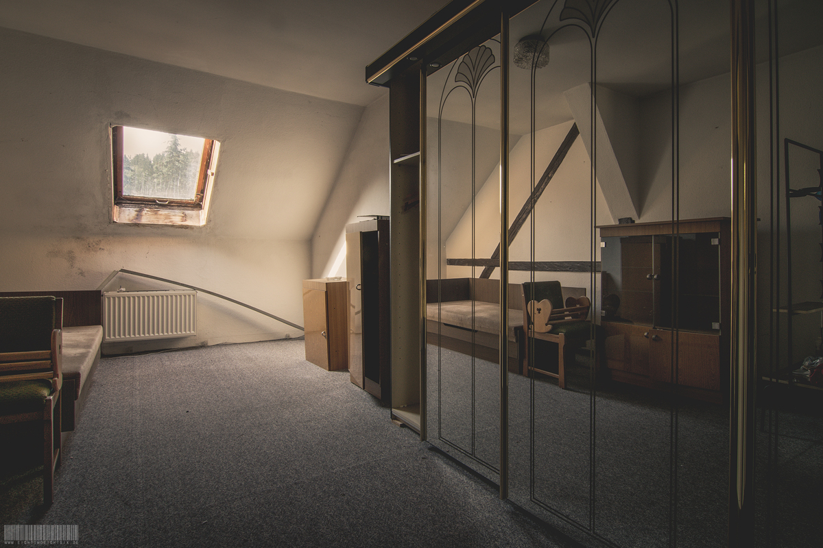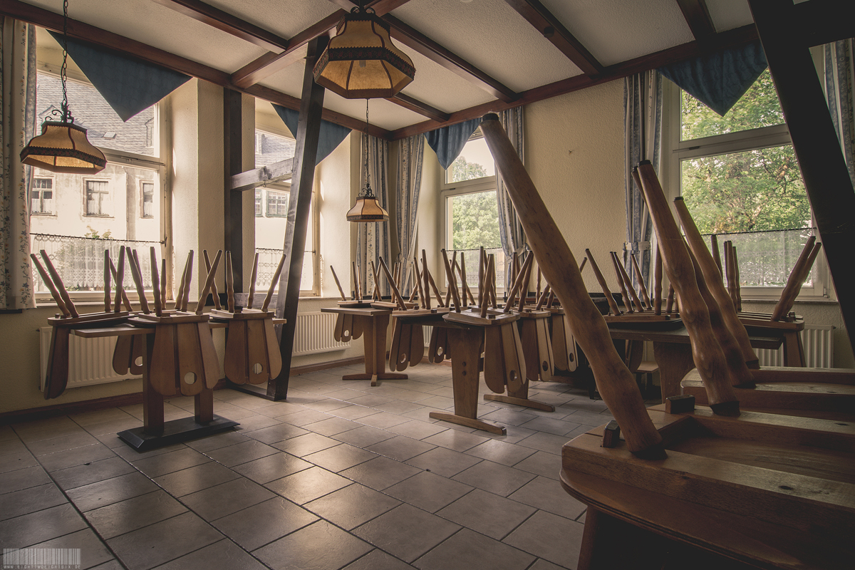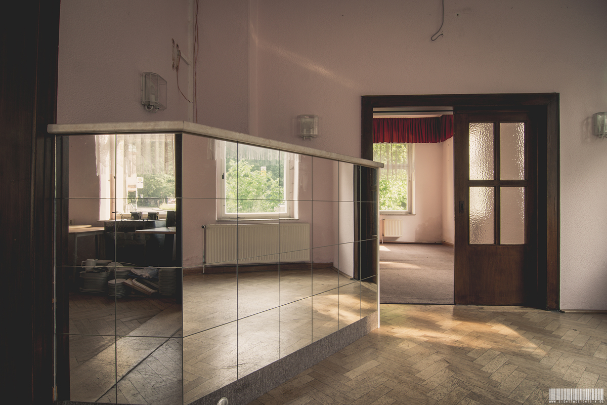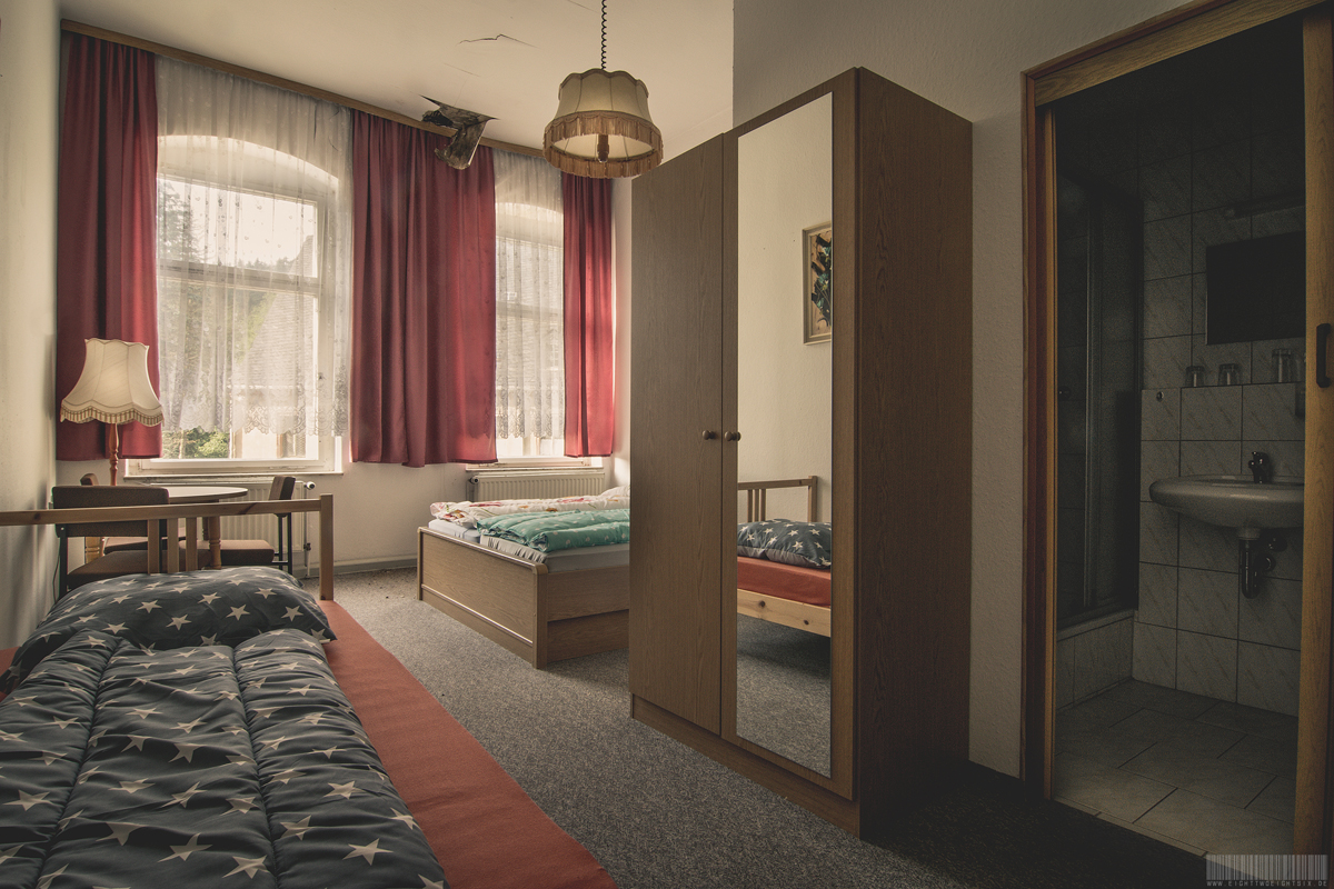 Der Sächsische Hof ist ein verlassenes Hotel mit Gaststätte und wurde vermutlich erst vor wenigen Jahren geschlossen. Dadurch ist dieser Lost Place nahezu unberührt. Das wird sich jedoch bald ändern, denn die ersten Löcher im Dach waren schon zu sehen und die Nässe und der Schimmel drangen bereits in vereinzelte Räume ein. Im Erdgeschoss befindet sich die leerstehende Gaststätte mit einem separaten Tanzraum mit DJ-Pult sowie einer zweiten Bar. Außerdem befinden sich die Rezeption und der Küchenbereich im Erdgeschoss. Im 1. und 2. Obergeschoss waren sehr viele Gästezimmer. Grob geschätzt sicher 30 Schlafräume mit Nasszelle. Im Dachgeschoss war zudem eine Wohnung mit großzügigem Badezimmer und einem Billardtisch.
