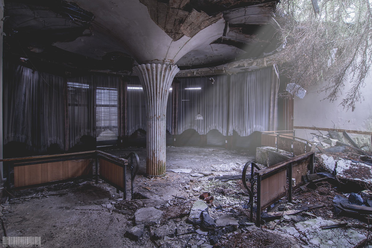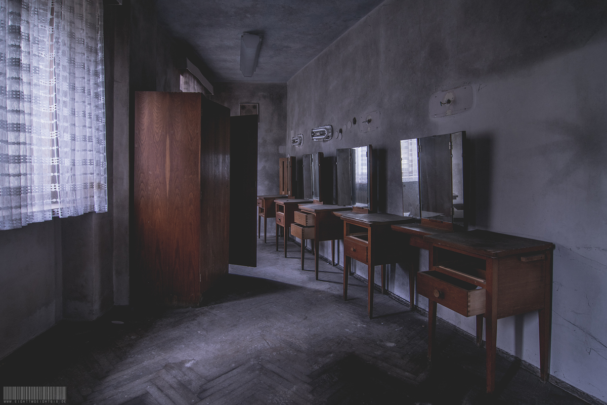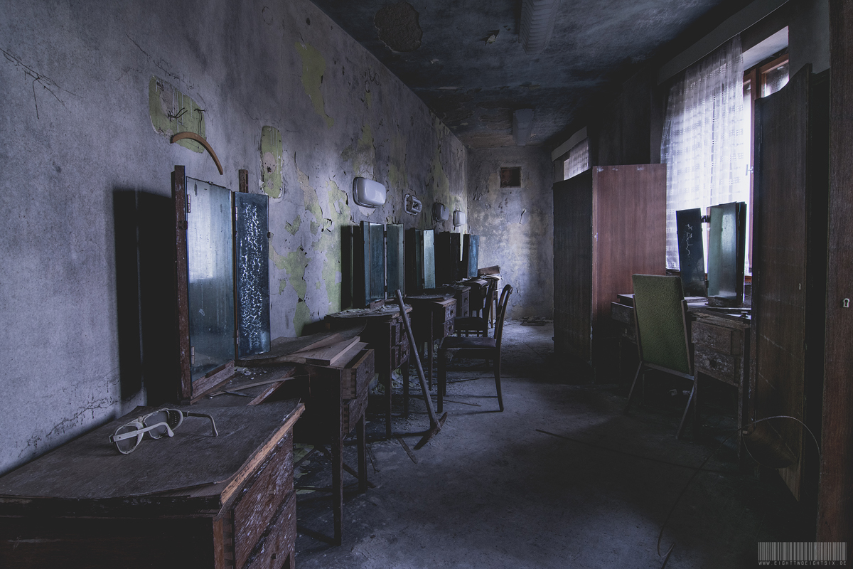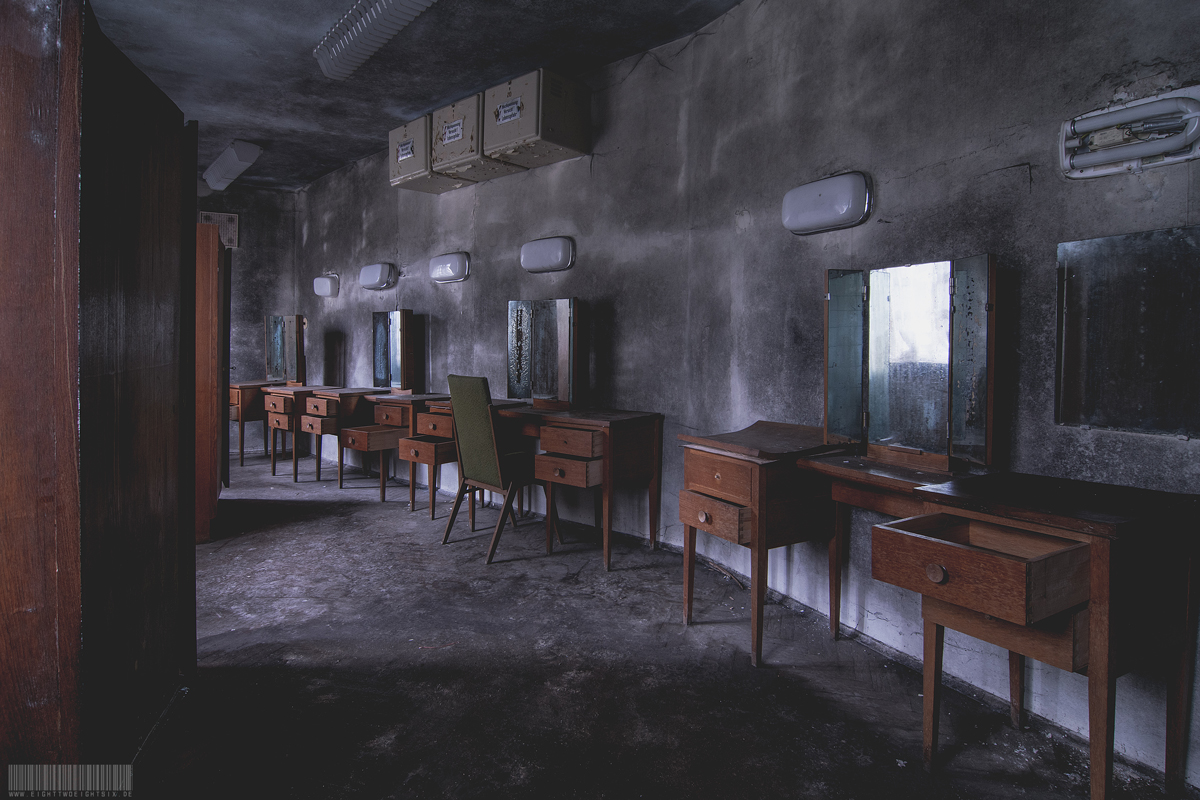 Das gesamte Objekt stellt einen wunderschönen Lost Place dar. Einige Decken sind bereits eingestürzt und an anderer Stelle scheinen bereits die Sonnenstrahlen durchs Dach. Besonders schön waren auch die Umkleidekabinen des ehemaligen Theatersaals. Hier befanden sich noch einige sehr schön anzusehende Schminktische. Unscheinbar anmutend steht dieses verlassene Sanatorium nun im tiefsten Erzgebirge und wird weiter verfallen.