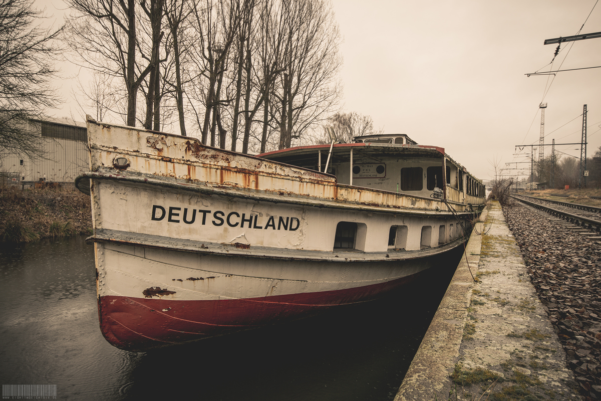 Dieses alte Fahrgastschiff namens Deutschland aus dem Jahre 1943 wurde ursprünglich als Dampfschiff gebaut, da in Kriegszeiten Dieselmotoren rar waren. Mit einer gebrauchten Dampfmaschine sollte es eigentlich als Schlepper fungieren. Allerdings wurde es bis Kriegsende nur als Wohnschiff genutzt. Erst ab den 50iger Jahren wurde es als Fahrgastschiff genutzt. Zum Einsatz, für Tagesausflüge, kam es auf der Spree und der Dahme. Ab Mitte der der 2000er Jahre wurde es anschließend als festliegendes Restaurantschiff genutzt. Seit ca. 2010 befindet es sich in einem desolaten Zustand in einem Industriehafen.