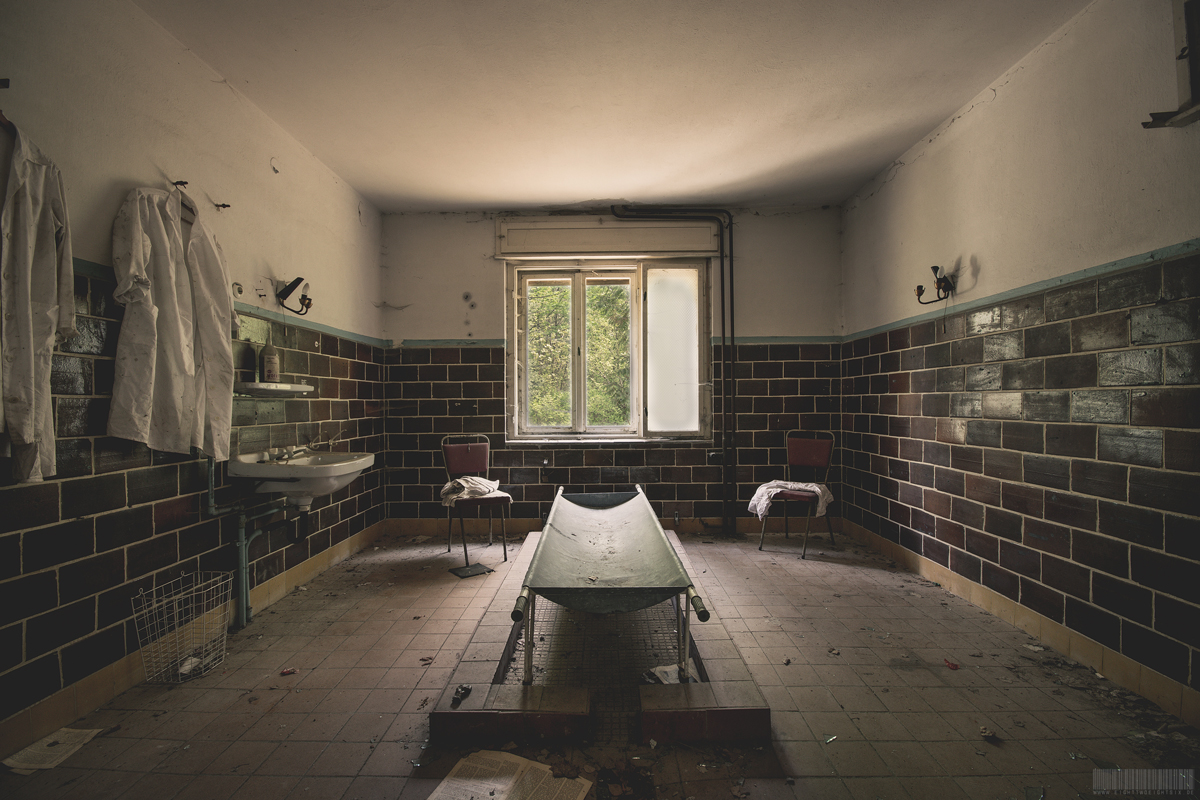 Es handelt sich hierbei um eine verlassene Leichenhalle in Brandenburg. Dies hört sich wahrlich nicht nach dem schönsten Ort für einen Besuch an. Dennoch gehört auch dies zum Leben einen jeden Menschen dazu. Jeder, so traurig das auch sein mag, stirbt irgendwann. Somit führt eines jeden letzter Weg, über solche eine Einrichtung. Die meisten Menschen fürchten sich bei dem Gedanken an solche Orte. Für manche allerdings ist dies der berufliche Alltag, denn in diesem Lost Place wurde einst auch gearbeitet. Zu den Aufgaben gehörten die letzte Waschung, das Herrichten, die Aufbewahrung und Kühlung der Leichen. Die hierfür angefallene Wäsche wurde in der ehemaligen DDR von Brandenburg bis nach Annaberg-Buchholz transportiert. Nicht der kürzeste Weg. Scheinbar war die dort ansässige Wäscherei auf diese besondere Wäsche spezialisiert. Mit der Wende wurde die Leichenhalle aufgegeben.