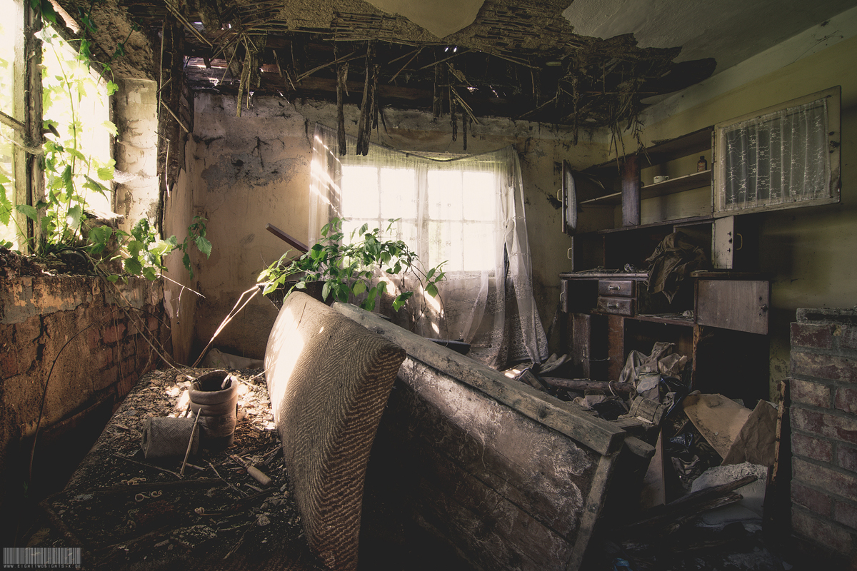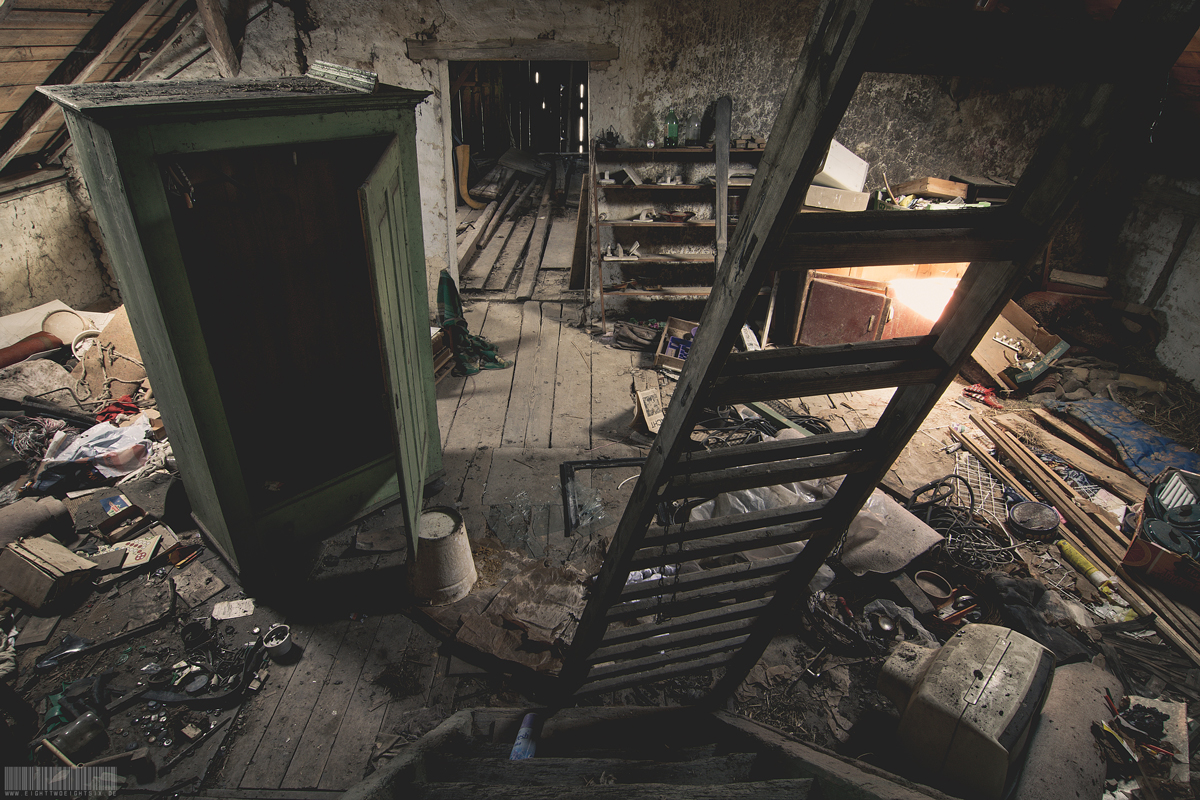 Abgelegen in mitten eines Feldes, nahe eines Waldes im Vogtland, befindet sich dieses alte verlassene Bauernhaus. Im Erdgeschoss lebte ein altes Ehepaar. Das Obergeschoss war an ein junges Pärchen vermietet. Das Haus steht vermutlich schon seit langem leer. Zuletzt soll nur noch das alte Rentnerpaar in dem Bauerngut gelebt haben. Angesichts der sanitären Einrichtungen kein Wunder. Badezimmer gab es keine und die Toilette war nur eine alte Latrine ohne Spülung, ähnlich wie ein Dixiklo, allerdings aus Holz. Sehr schön war an diesem Gebäude, dass ein Großteil der Möbel noch vorhanden war und kaum etwas zerstört. Lediglich viel Unordnung herrschte.