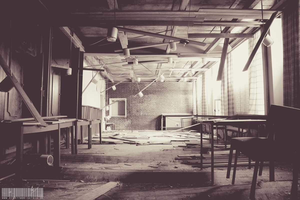 Im tiefsten Erzgebirge, zugewuchert hinter Hecken und Büschen befindet sich ein toller Lost Place, das Hotel Atlantis. Hierbei handelt es sich um ein ehemaliges DDR-Ferienheim. Lange Zeit wurden hier Touristen, insbesondere Ski-Fahrer untergebracht. Dies zeigt sich auch im Erdgeschoss, wo sich direkt neben dem Eingang Räume zur Skiabgabe befanden. Außerdem gelangten die Gäste vom Eingang aus über eine Treppe in die große Schwimmhalle. Traumhaft wird es hier einst gewesen sein.